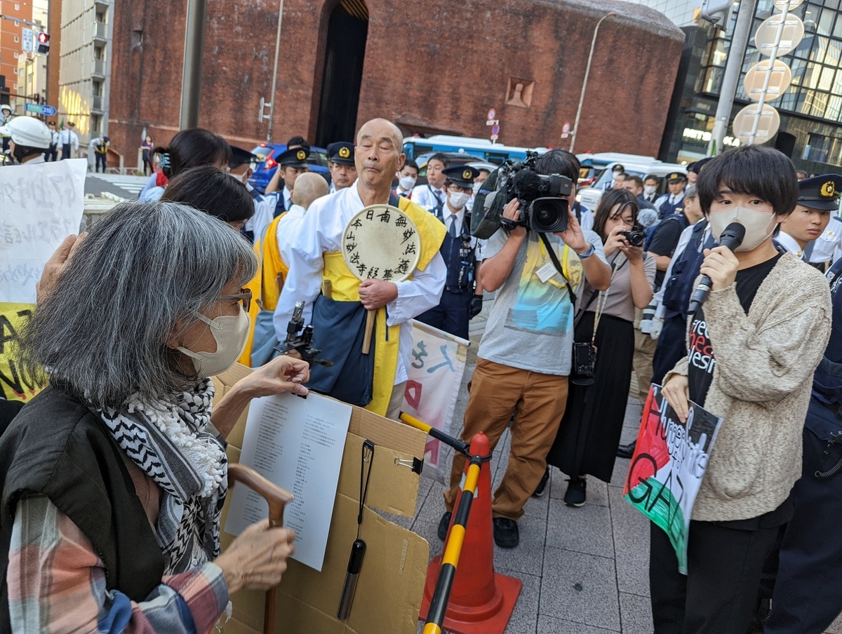 「ここに警察官がいるが、パレスチナ西岸で兵士でもないイスラエル市民がパレスチナの子どもを撃ち殺すのを見た。今、この瞬間に虐殺を止めなければいけない。パレスチナにも私たちの声は届いている。絶対に止めたい」